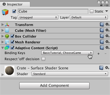 If the GameObject contains a Text, TextMesh, or TextMeshPro component, select the AdaptiveText component; otherwise, pick the AdaptiveContent component.